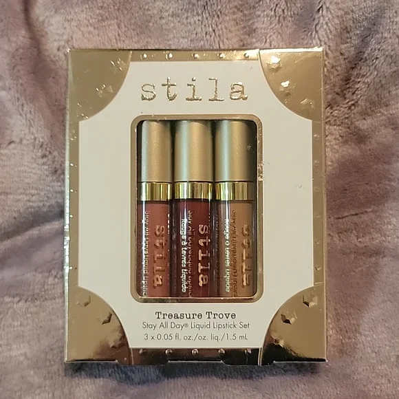 Brand new in box, Stila Treasure Trove Stay All Day Liquid Lipstick set. comes in three shades, Patina, Rubino, and Fia.