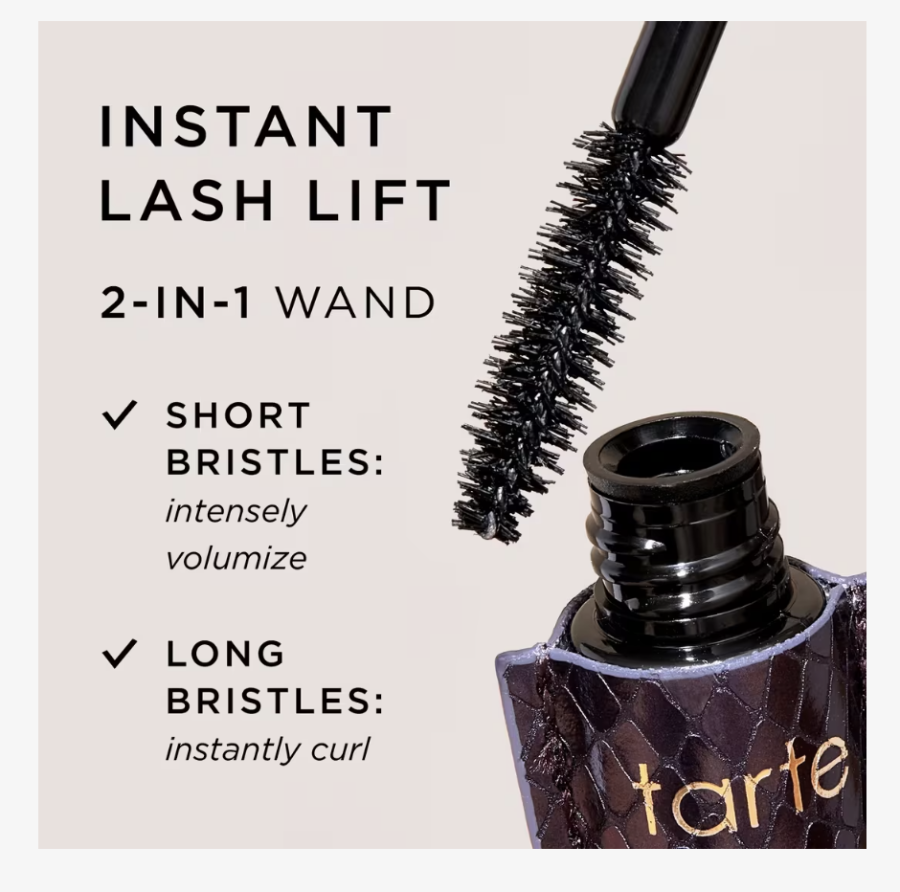 Push-up bra for your lashes! Tarte's Lights, Camera, Lashes 4-in-1 mascara volumizes, lengthens, curls & conditions lashes.