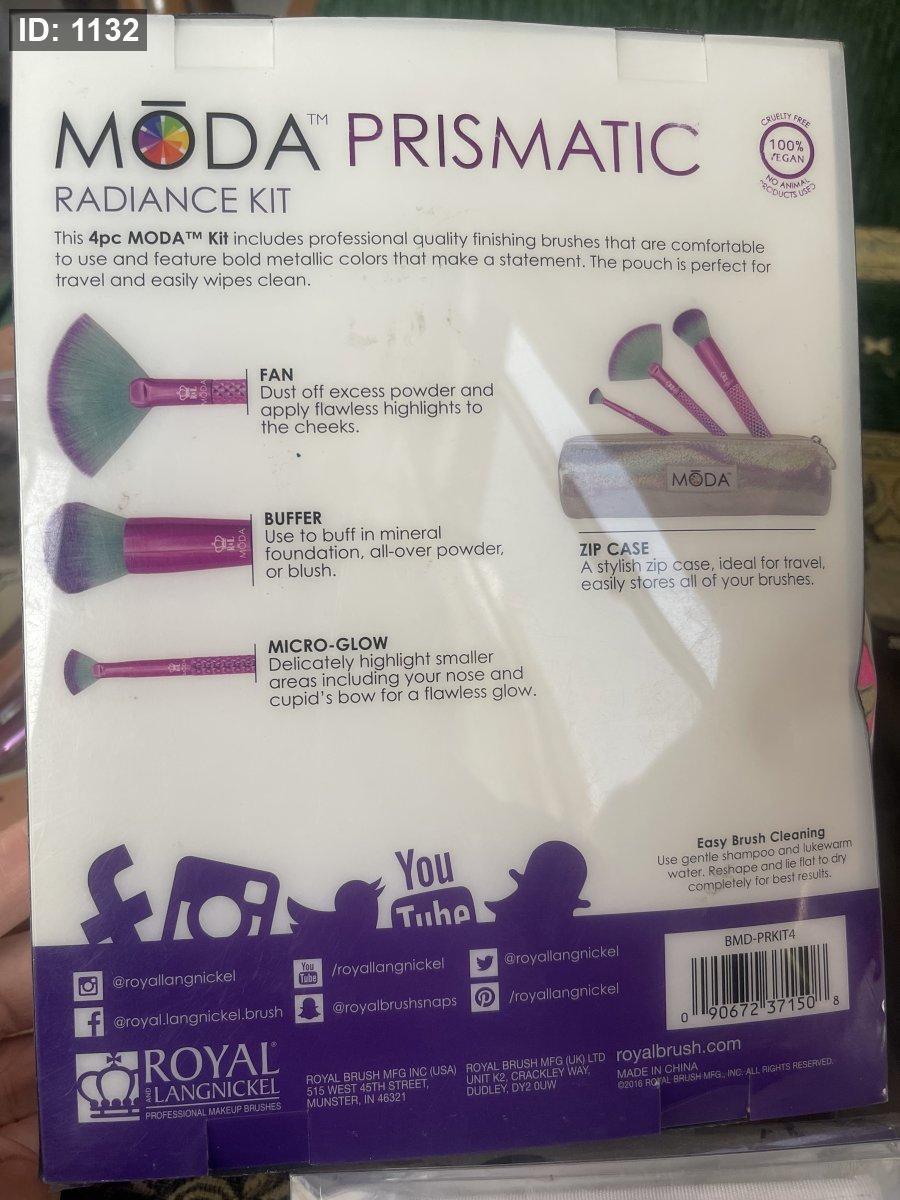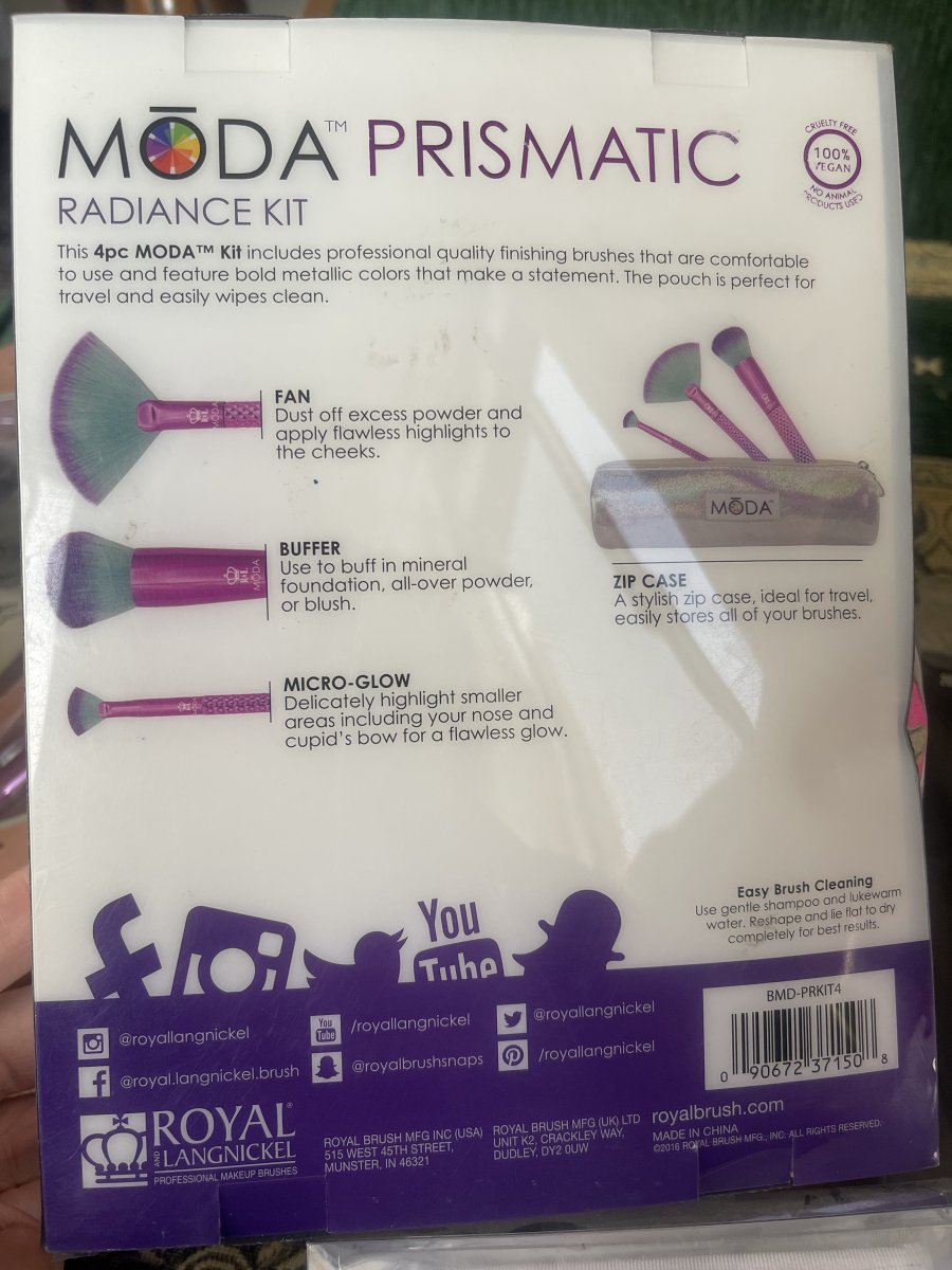 This deluxe full face brush set includes brushes for foundation, contour, highlight, and eyes. Each brush features the gorgeous rainbow colors of the MŌDA® Prismatic line, with two-toned plum and teal fibers. Take this set on-the-go with the included travel zip case.
