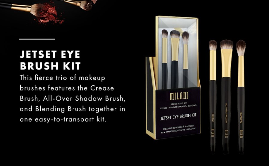 Milani Jetset Eye Brush Kit, includes 3 eye brushes