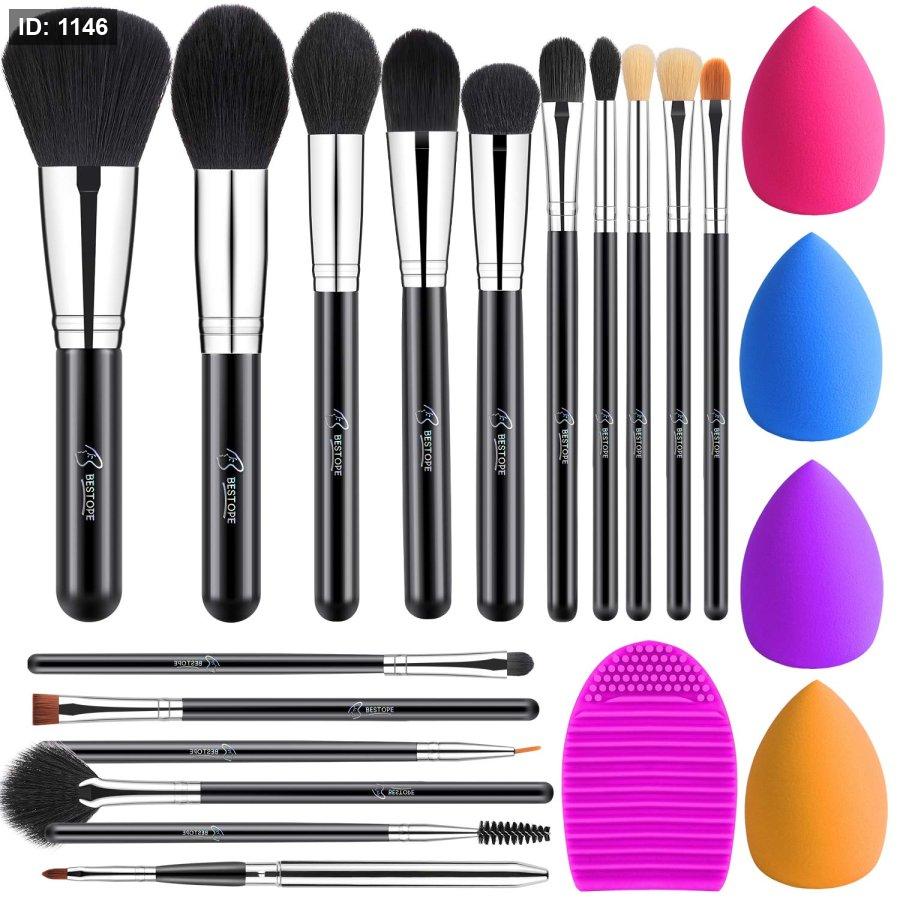 This set includes 16 professional brushes and 4 beauty blenders, covering all application needs from foundation to eyeshadow, catering to both beginners and makeup enthusiasts.