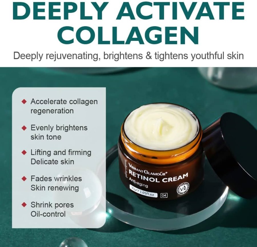 VibrantGlamour Retinol Face Cream Anti Aging, Retinol Hydrating Firming & Revitalizing Cream Anti-Wrinkle, Miracle Retinol Anti-Aging Kit, Retinol Facial Serum (1, Cream