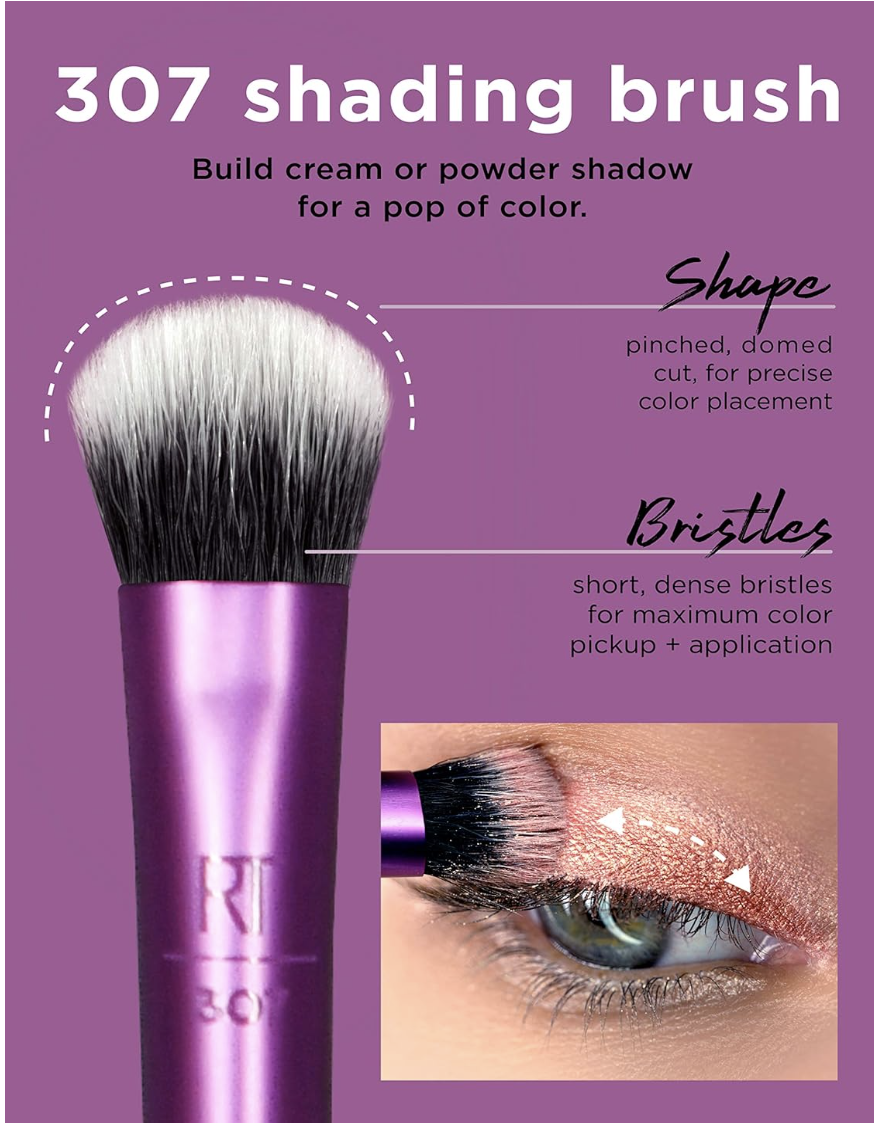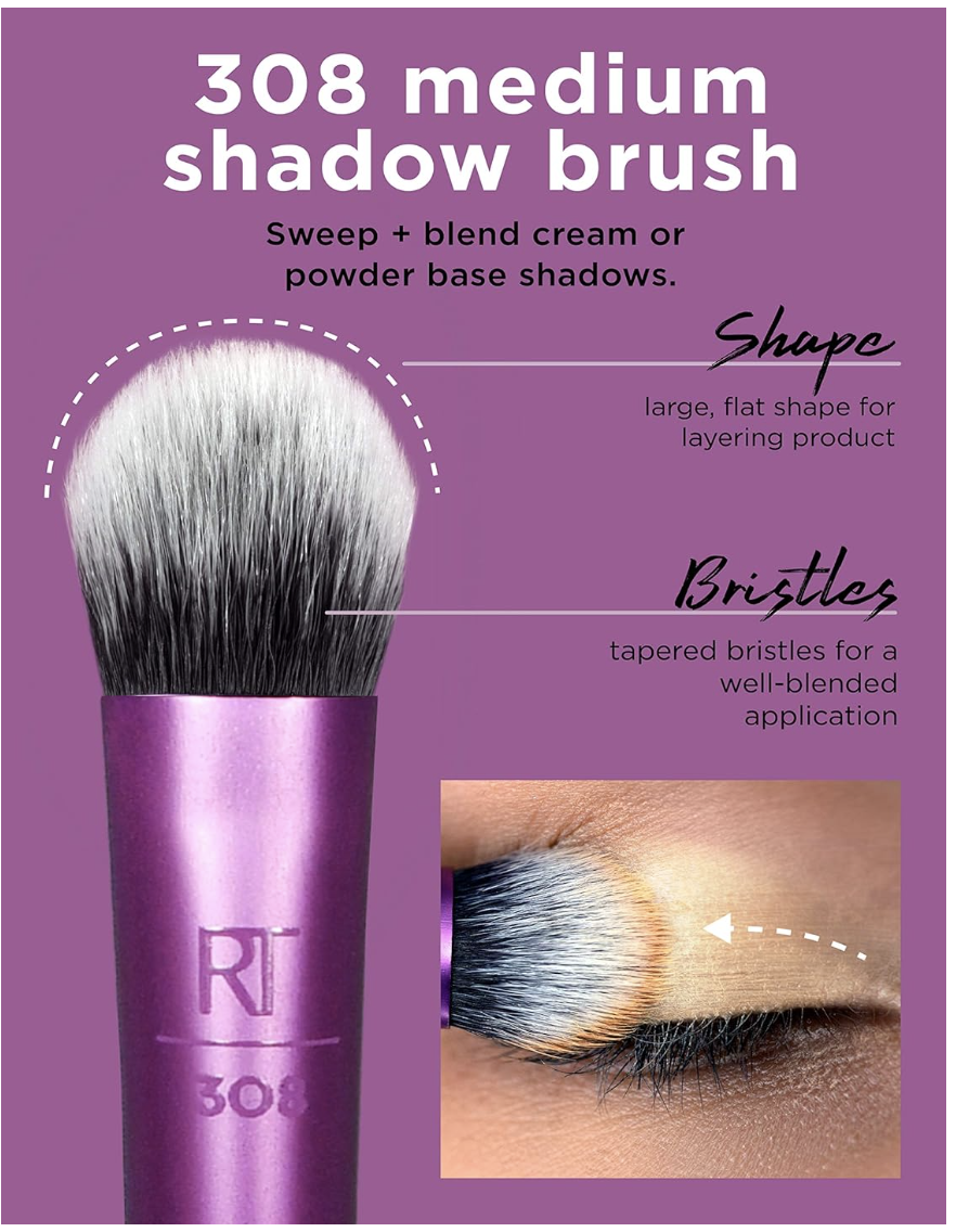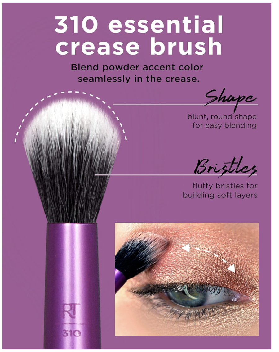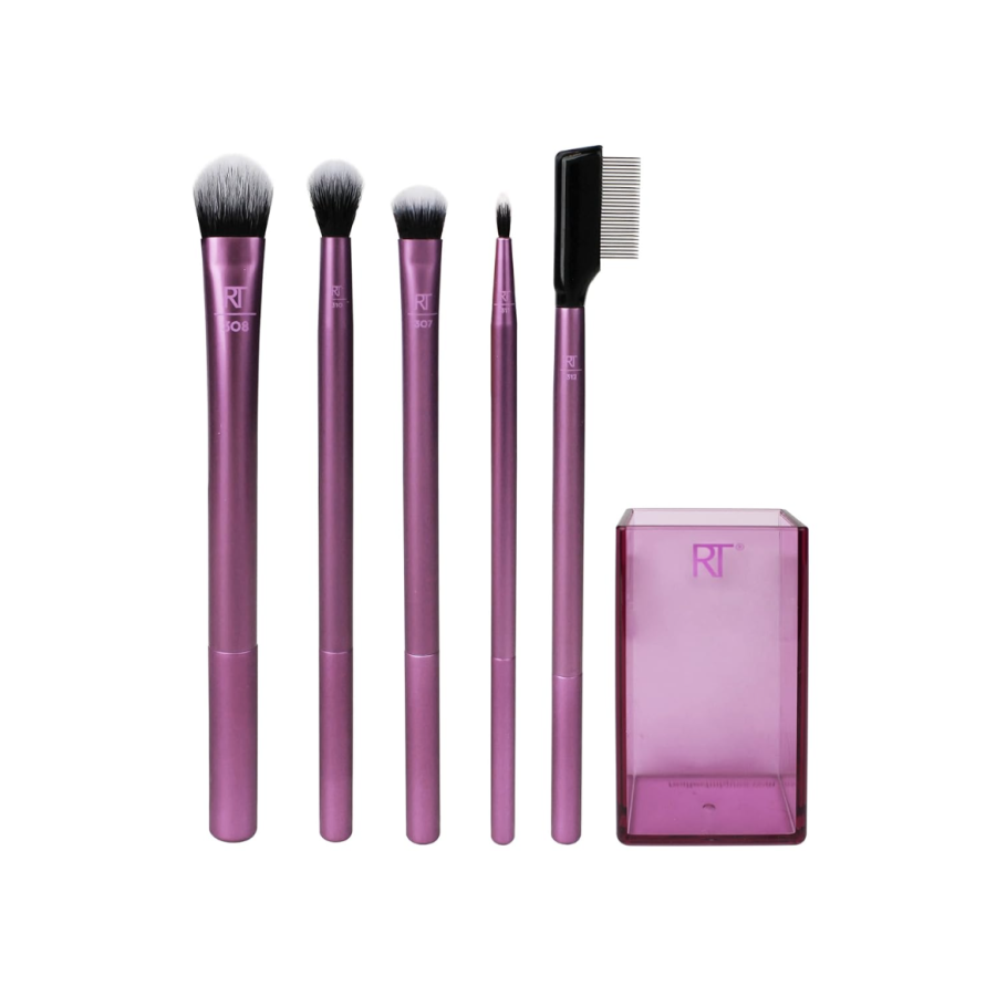 Real Techniques Cruelty Free Enhanced Eye Set, Eyeshadow and Brow Brushes, Purple, 6 Piece Makeup Brush Kit