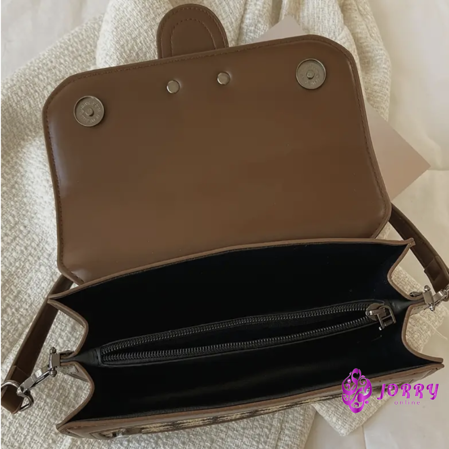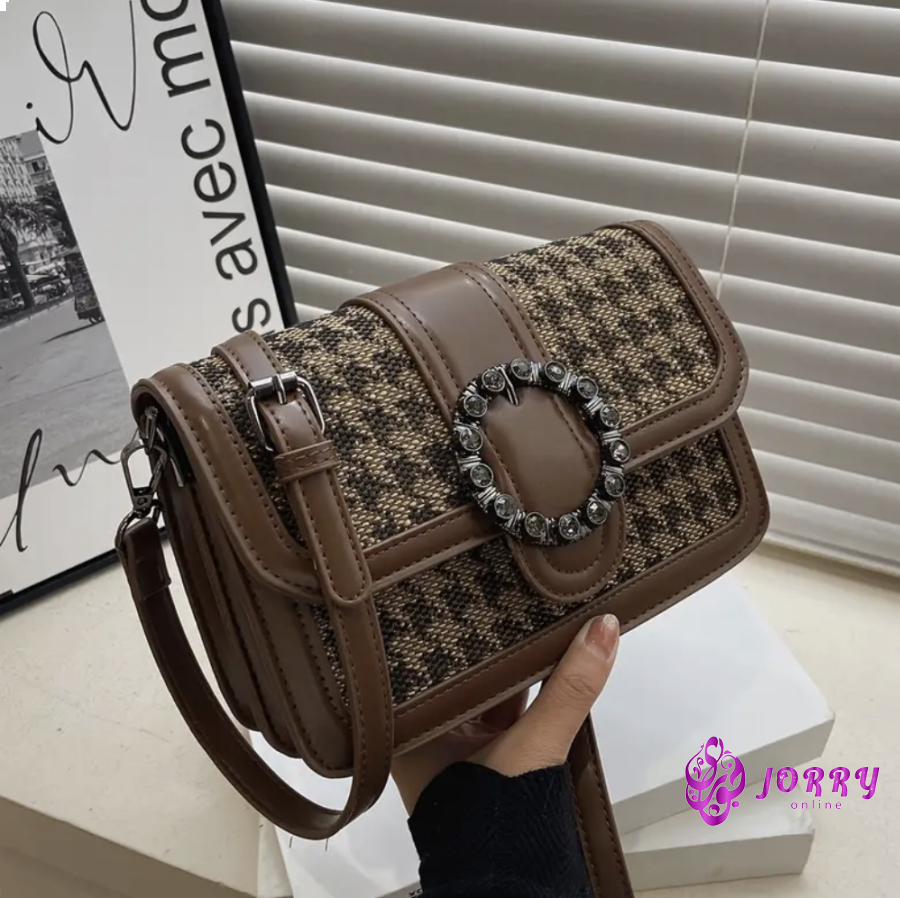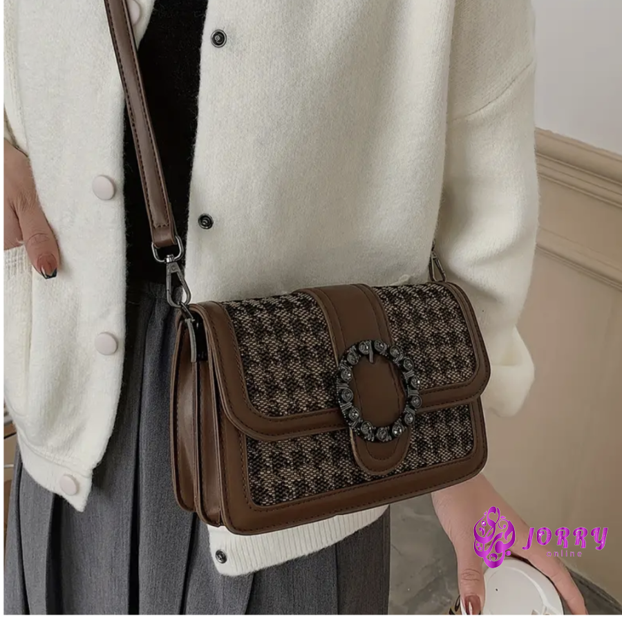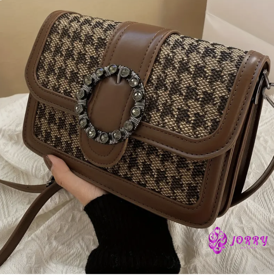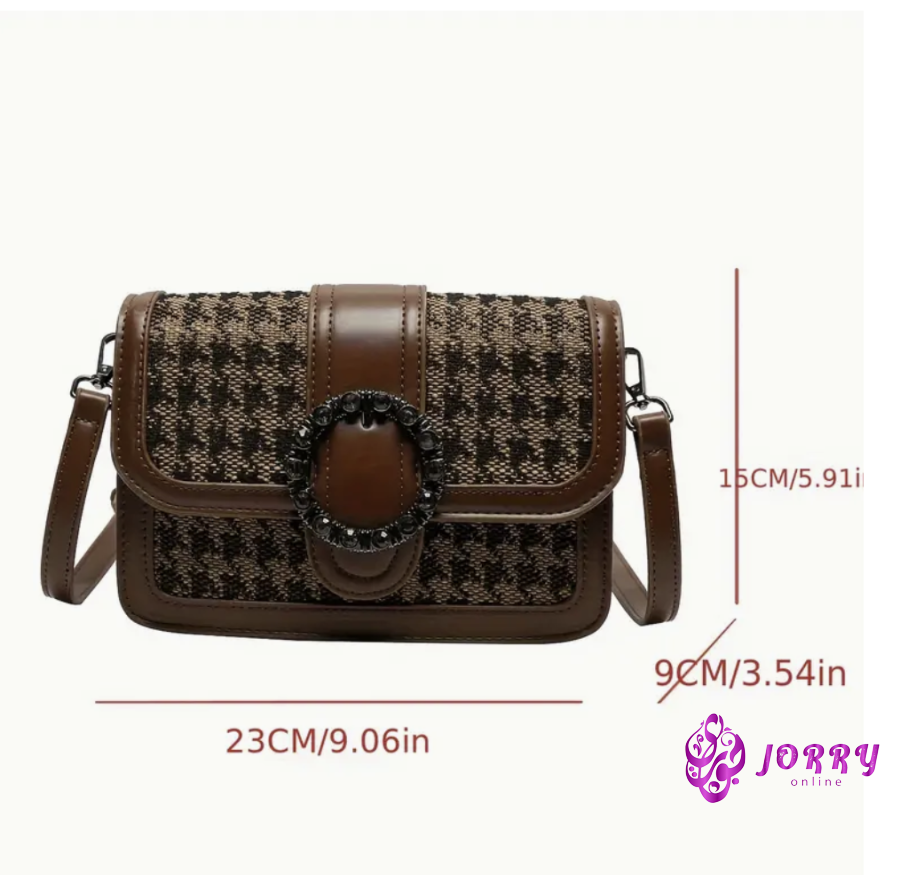 Vintage Houndstooth Pattern Crossbody Bag, Rhinestonre Decor Three-layer Square Bag, Perfect Shoulder Bag For Daily Use