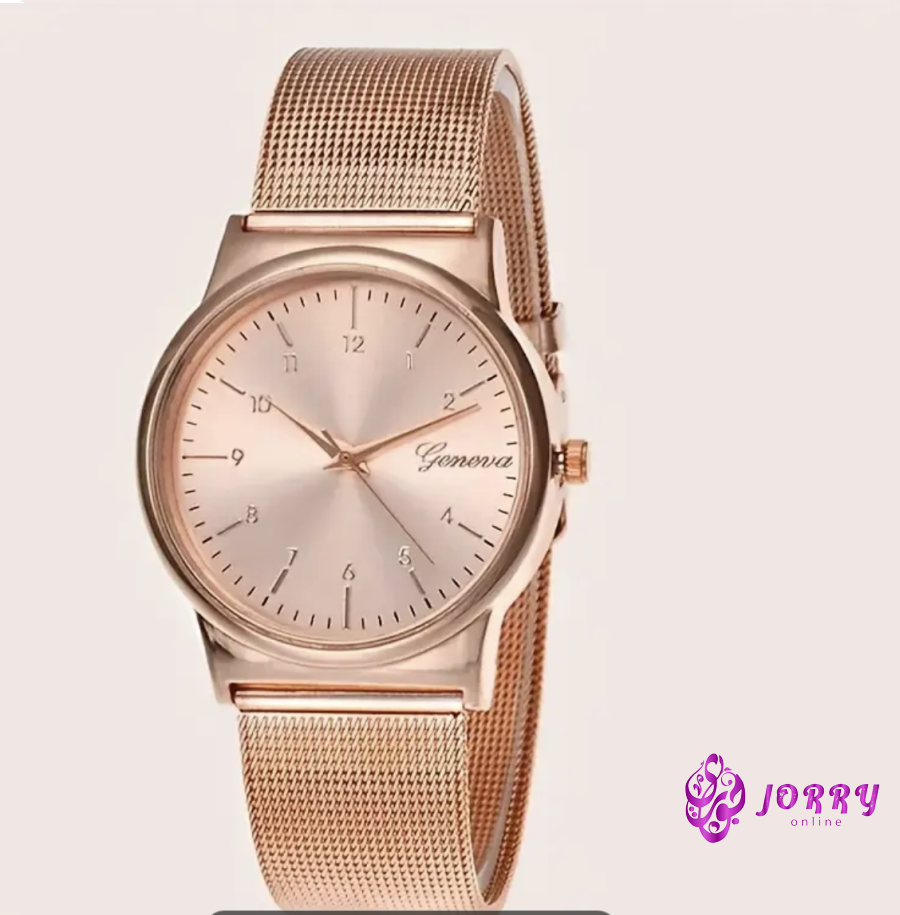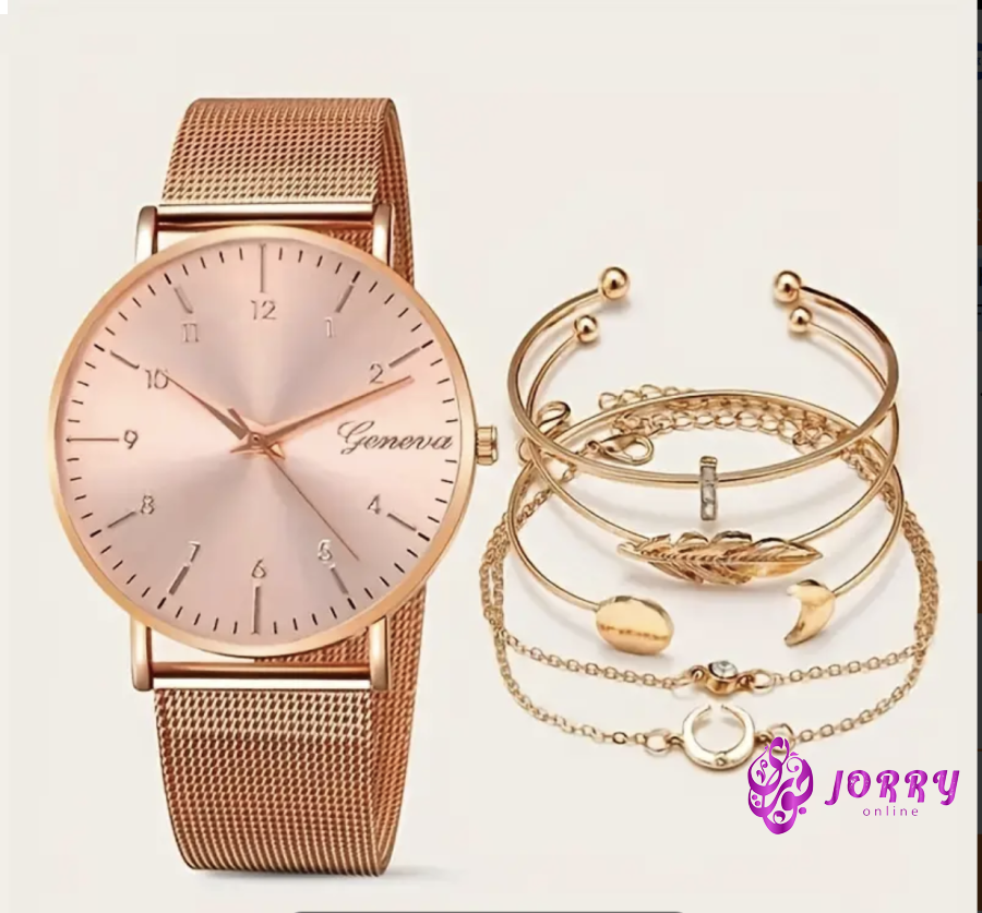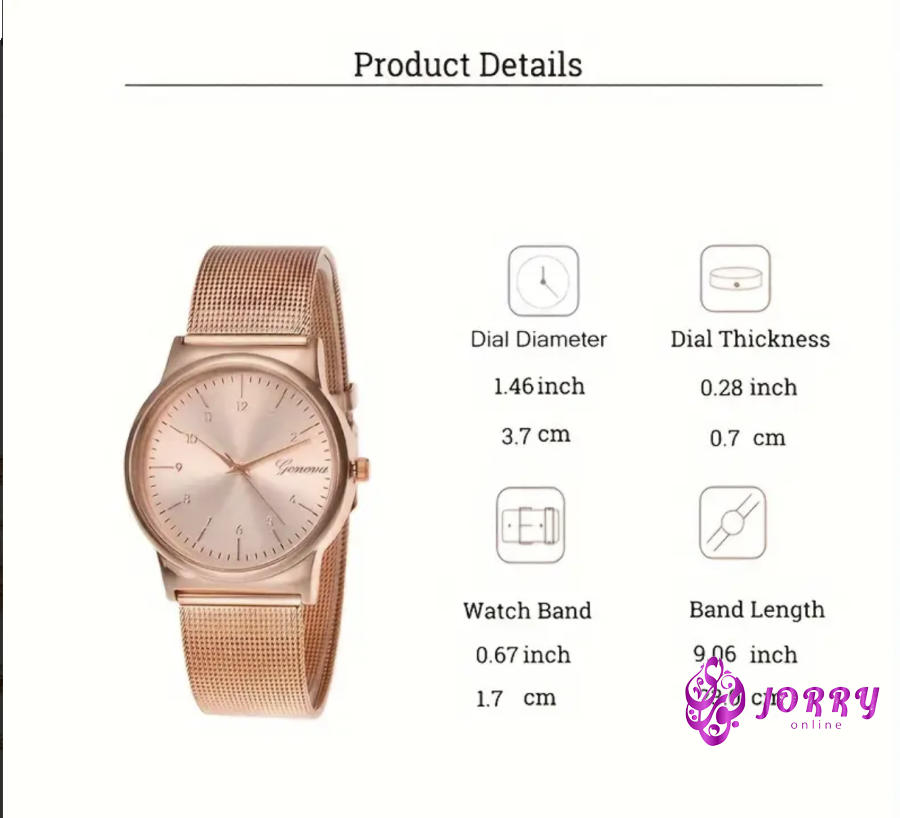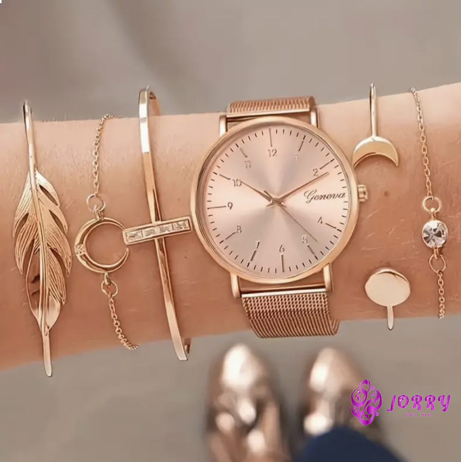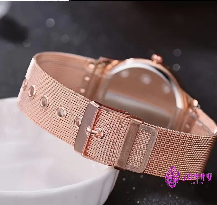 6pcs/set Women's Watch Luxury Rose Golden Quartz Watch Analog Stainless Steel Mesh Wrist Watch & Bracelets, Gift For Mom Her for eid, ramadan