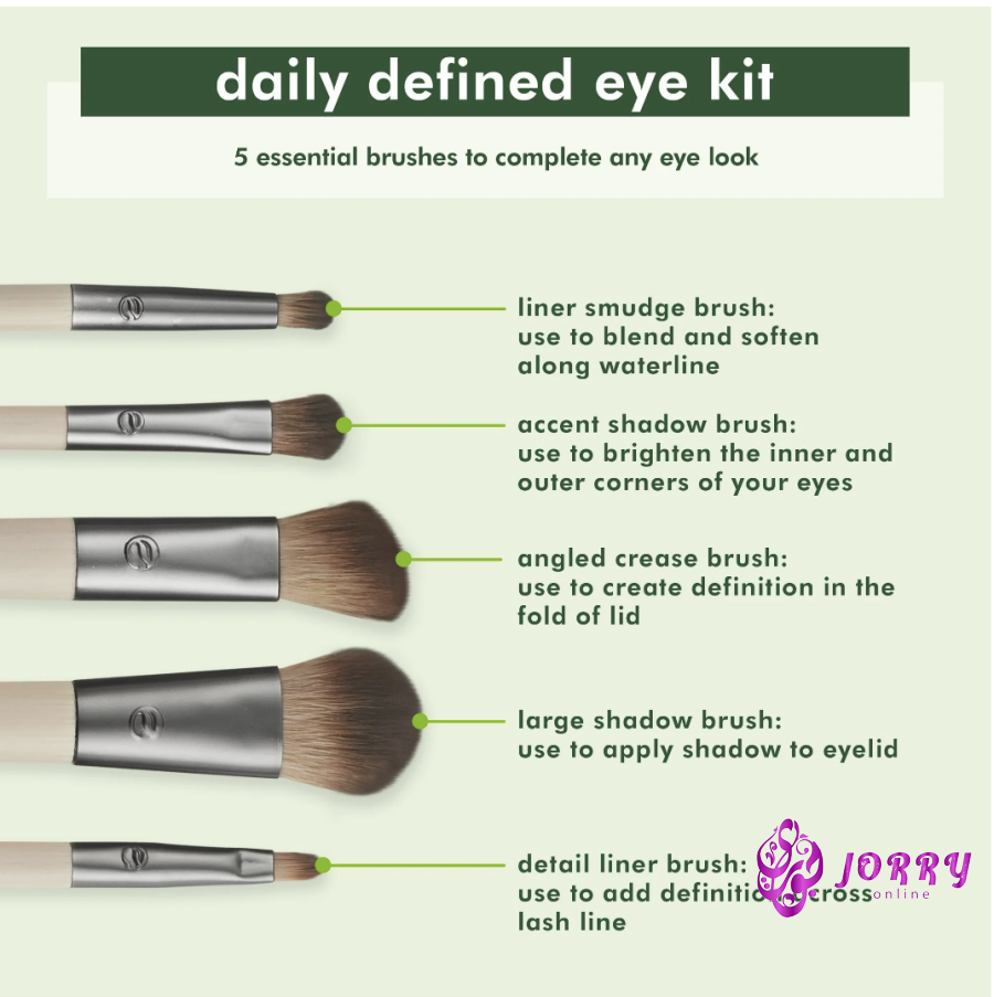 يمكن استخدام مجموعة فرش المكياج مع ظلال العيون وكحل العيون لتحديد وتشكيل التجعد والجفن