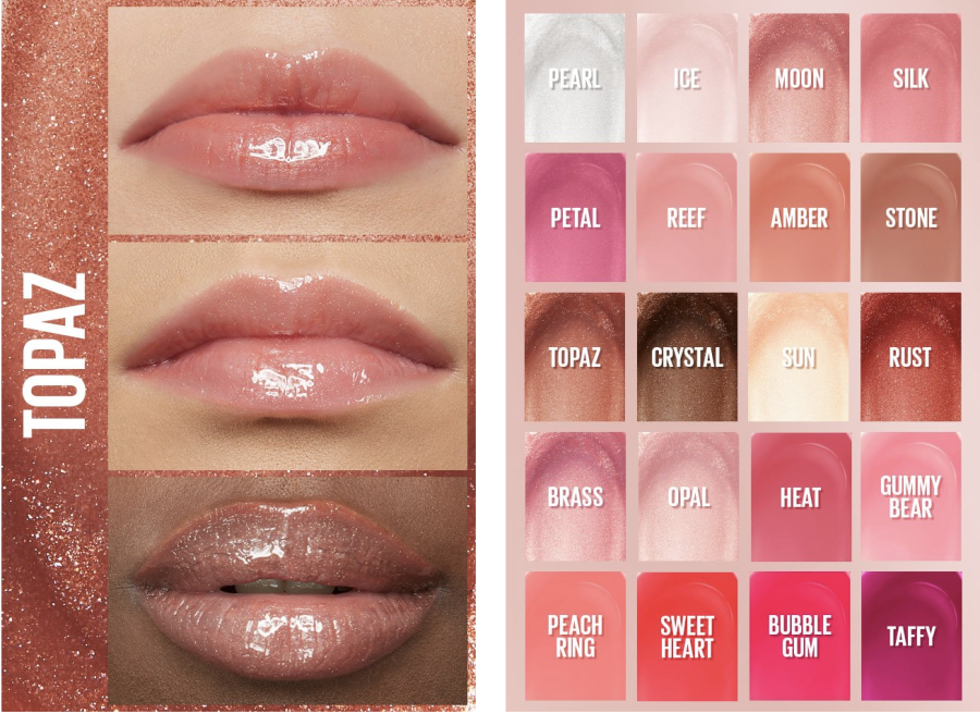 Maybelline Lifter Gloss Lip Gloss with Hyaluronic Acid, Petal, Meet Maybelline New York's new next level lip gloss. Drench lips with hydrating shine for a fuller, lifted look. This formula visibly smooths lip surface and enhances lip contour with high shine. Plus, its XL Wand transforms lips in an easy, one swipe application. 90% agree lips feel hydrated. *in a consumer test. This hydrating lip gloss is available in a full range of modern shades, like Pearl, Ice, Amber, Topaz, Crystal and more. Formula with Hyaluronic Acid. Apply it for a hydrating, glossy shine and fuller look.
