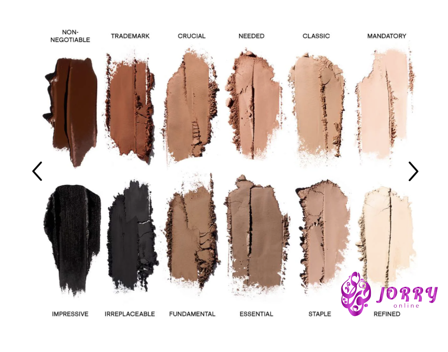 - 10 x 0.06 oz/ 1.8 g powder eyeshadows in Mandatory, Refined, Classic, Staple, Needed, Essential, Crucial, Fundamental, Trademark, Irreplaceable