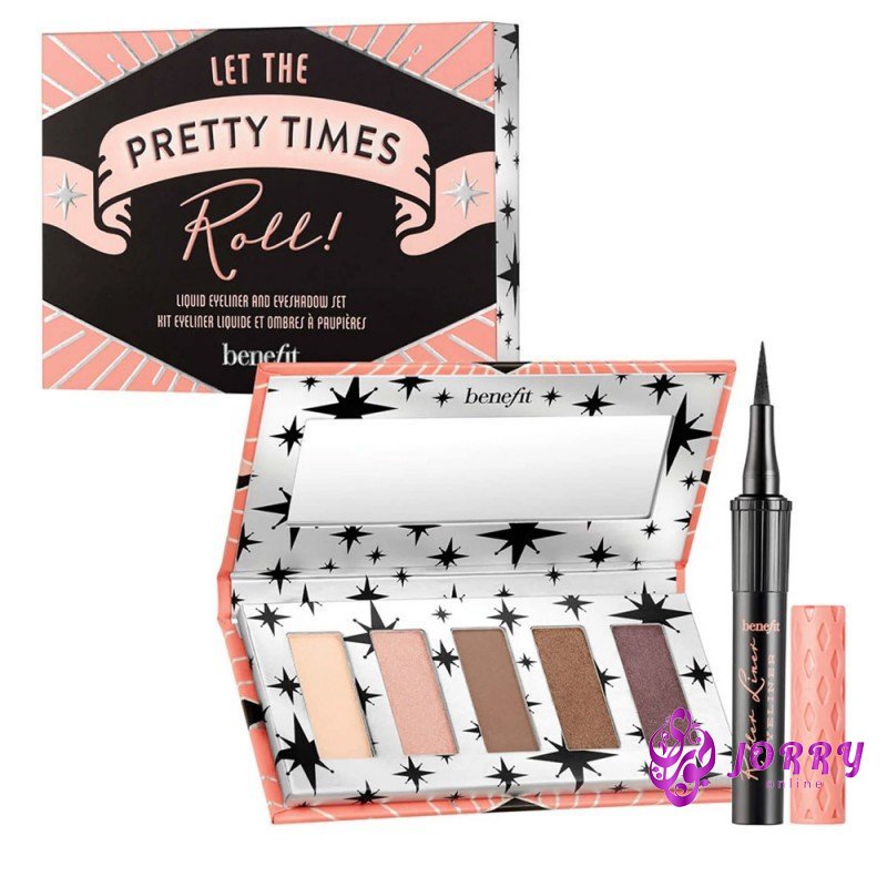 Benefit LET THE PRETTY TIMES ROLL! هو عبارة عن مجموعة مميزة من منتجات التجميل، تضم عدة ألوان مختلفة من ظلال العيون والبلاشر والهايلايتر. تم تصميم هذه المجموعة لإضفاء لمسة من اللون والتألق على مظهر المرأة.